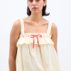A fresh take on everyday comfort, the Hattie Waffle Cami in burg features a soft boat neck, mini button placket, and a flattering sleeveless fit. Finished with a playful ruffle hem, this organic cotton blend piece pairs perfectly with the matching Piper Waffle Jogger.