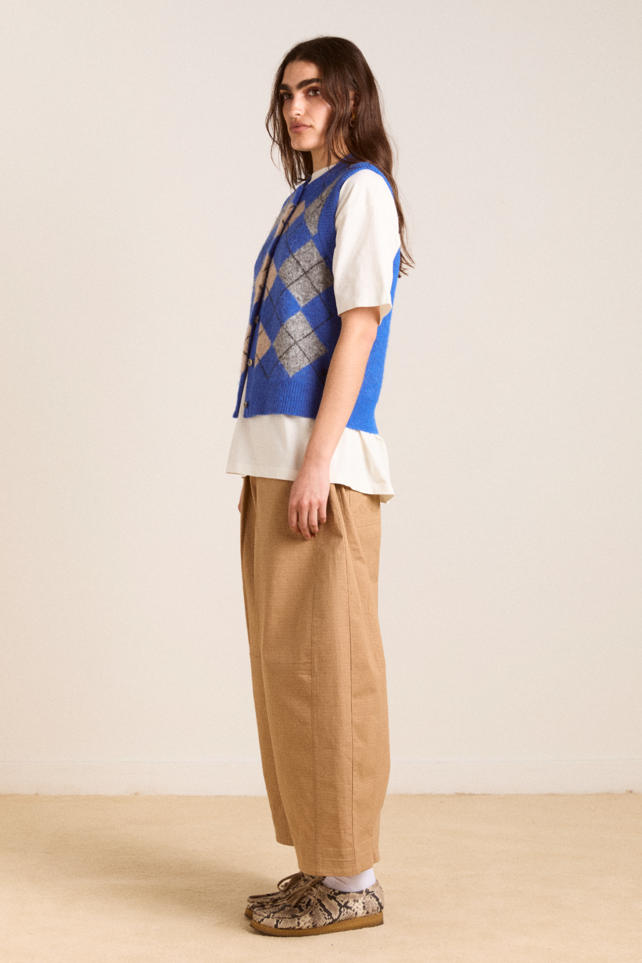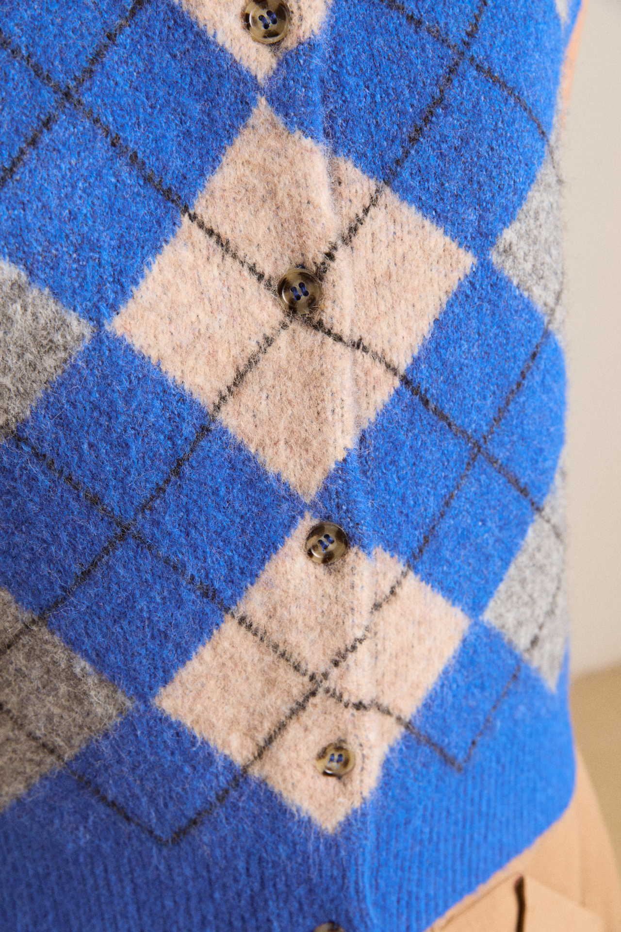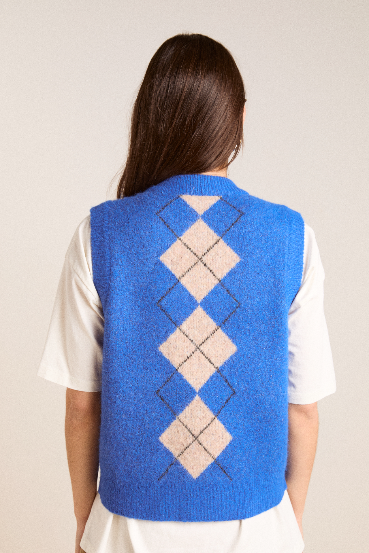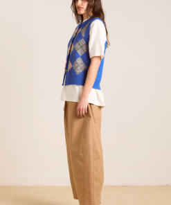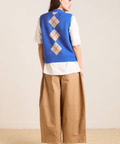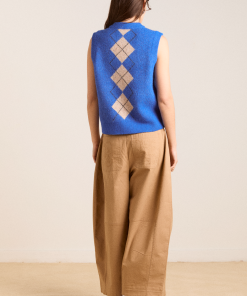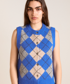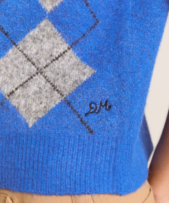 Sure to command attention, the Aggie Knitted Vest in argyle features branded buttons and our signature DM embroidered logo. Designed to be layered or worn on its own, the Aggie will carry you from season to season.