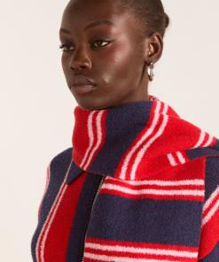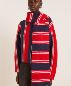 A bold layering piece with a soft, structured feel. This striped scarf is crafted from a certified responsible wool standard merino wool blend, featuring subtle DM embroidery and clean finishing. Designed to pair seamlessly with the matching bibi cardigan.