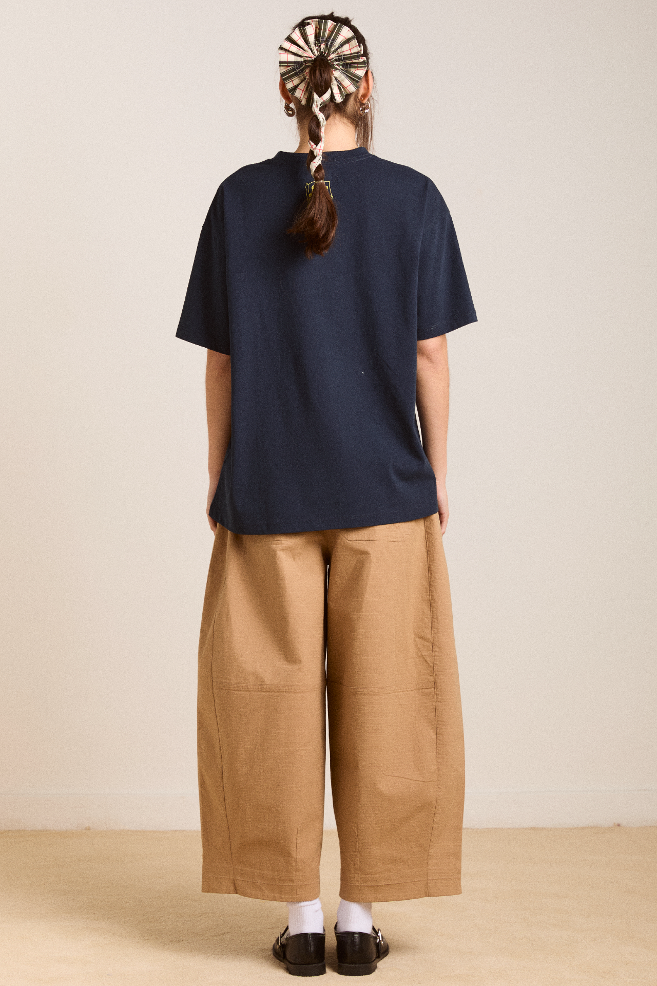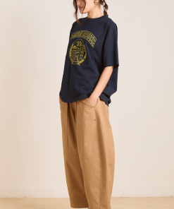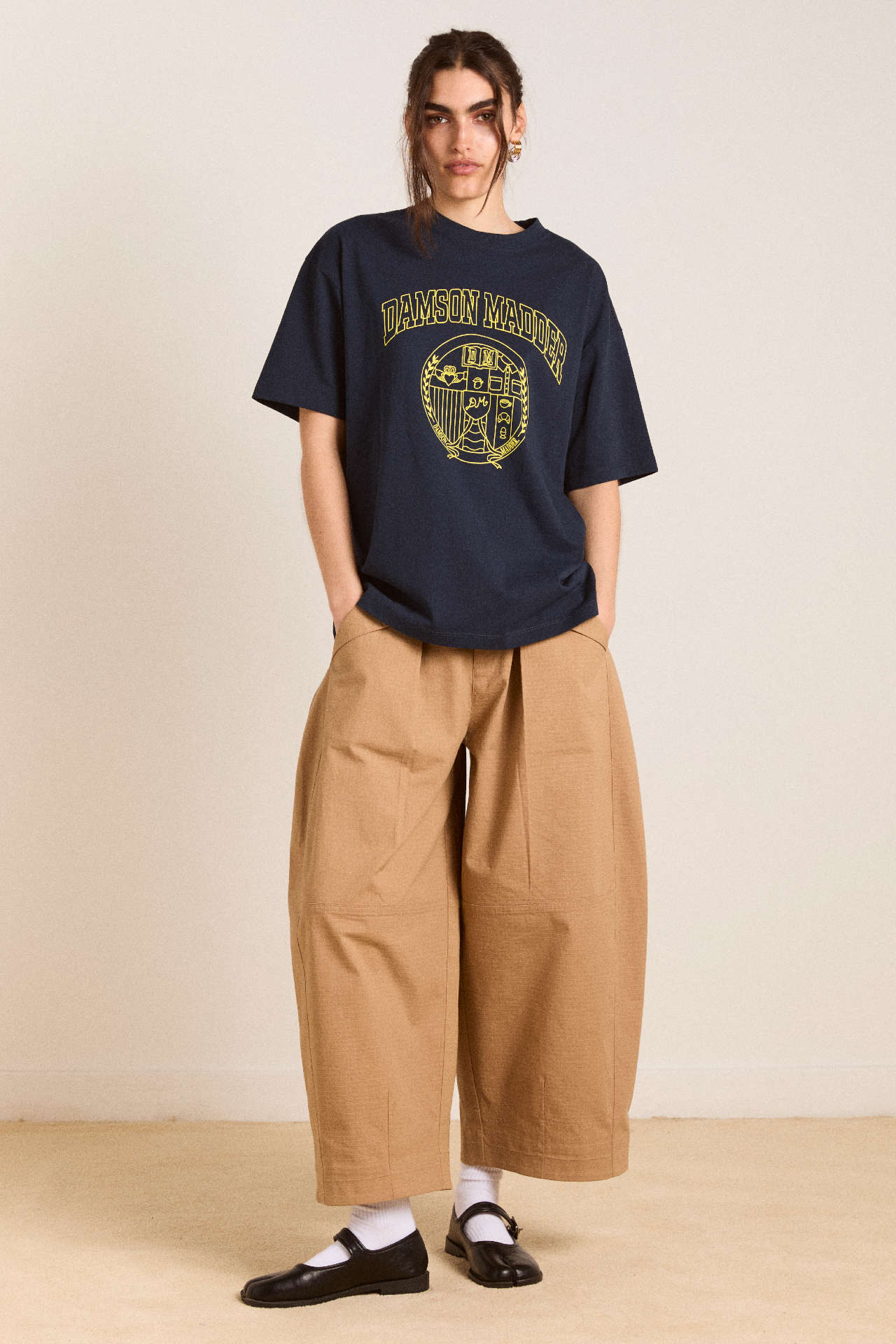 Crafted from 100% organic cotton, our Damson Collegiate Tee is the go-to piece you’ll reach for every day. Designed with a relaxed, oversized fit, this tee features thoughtfully placed graphic prints, designed by our creative director, on the front and back.