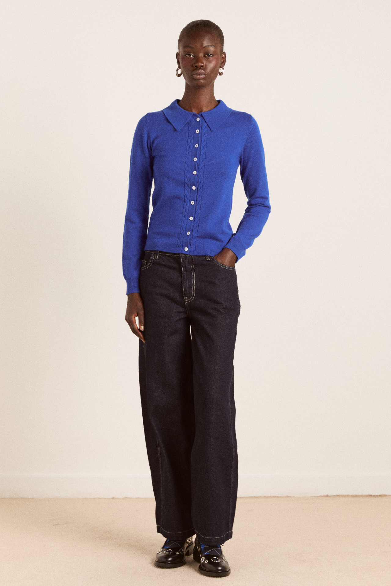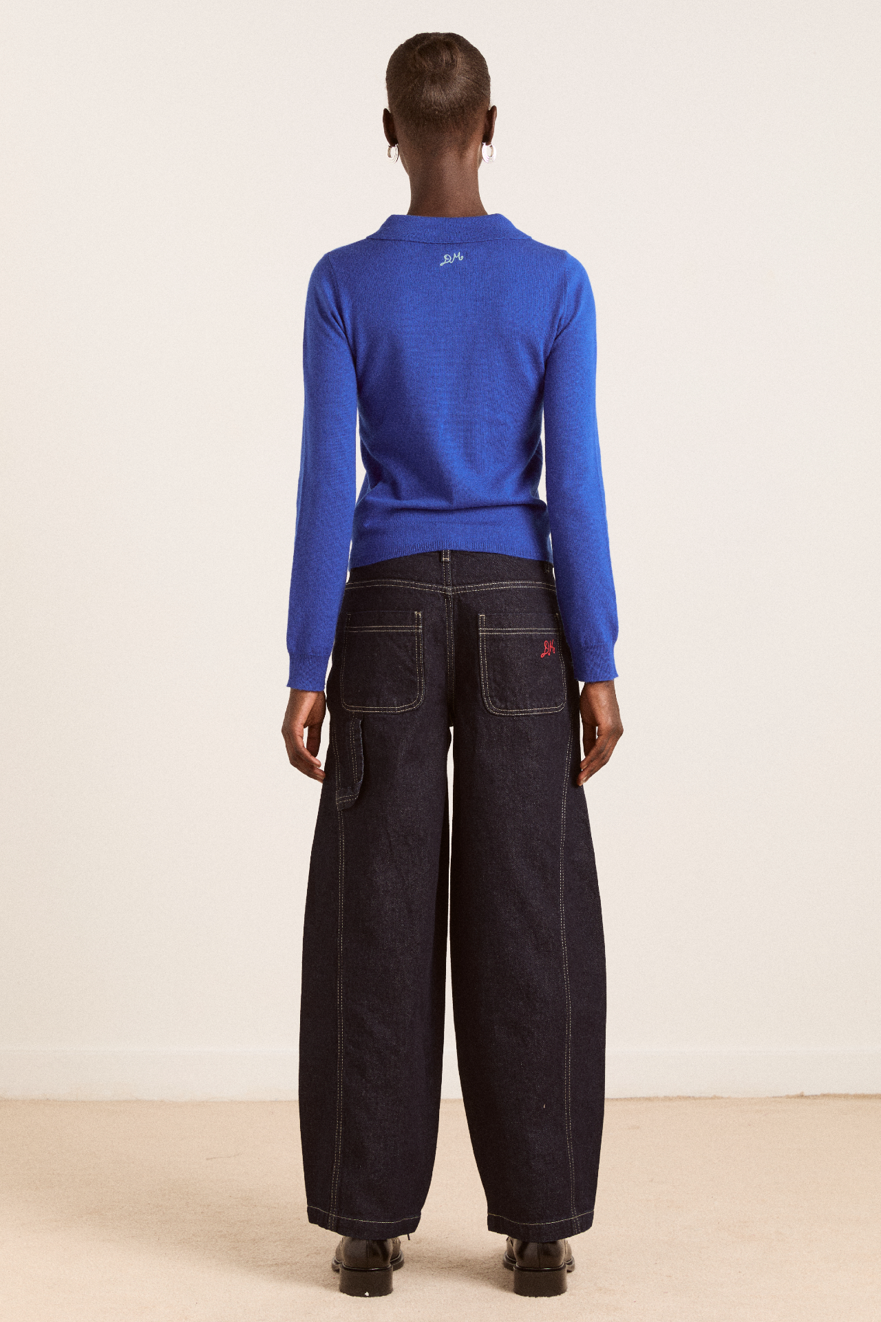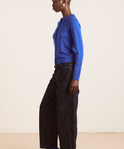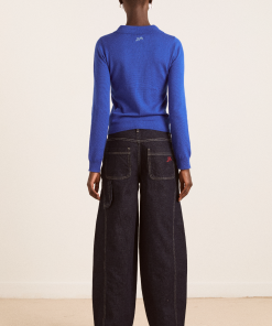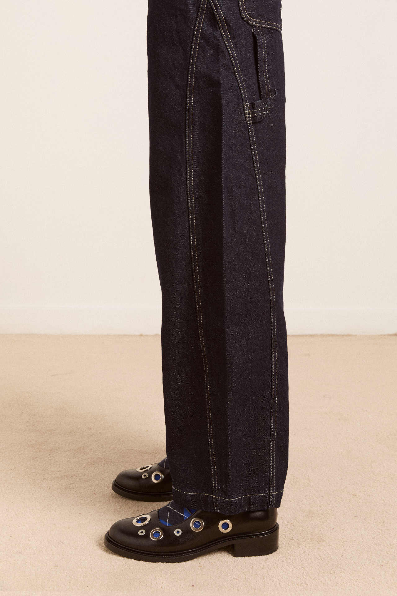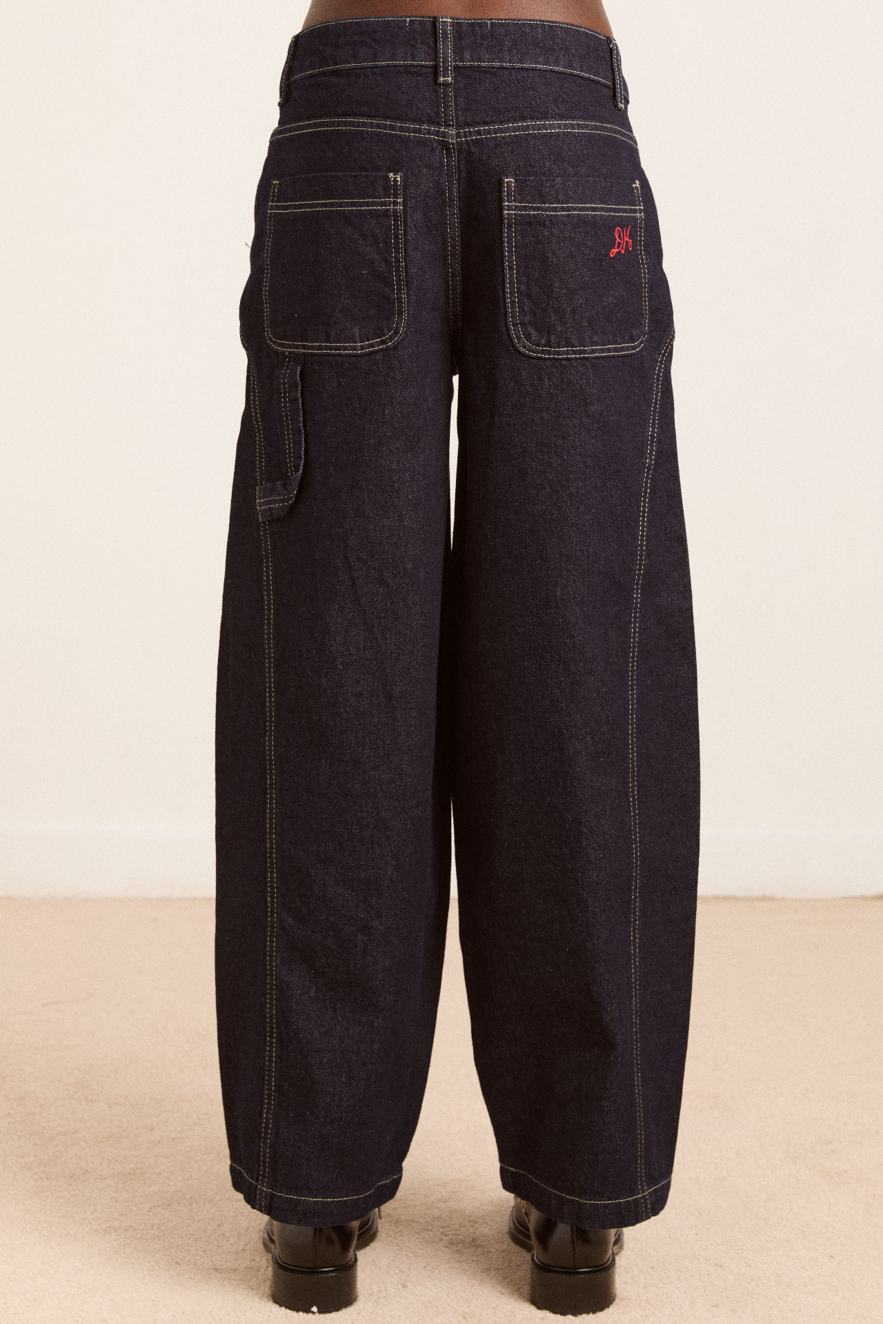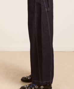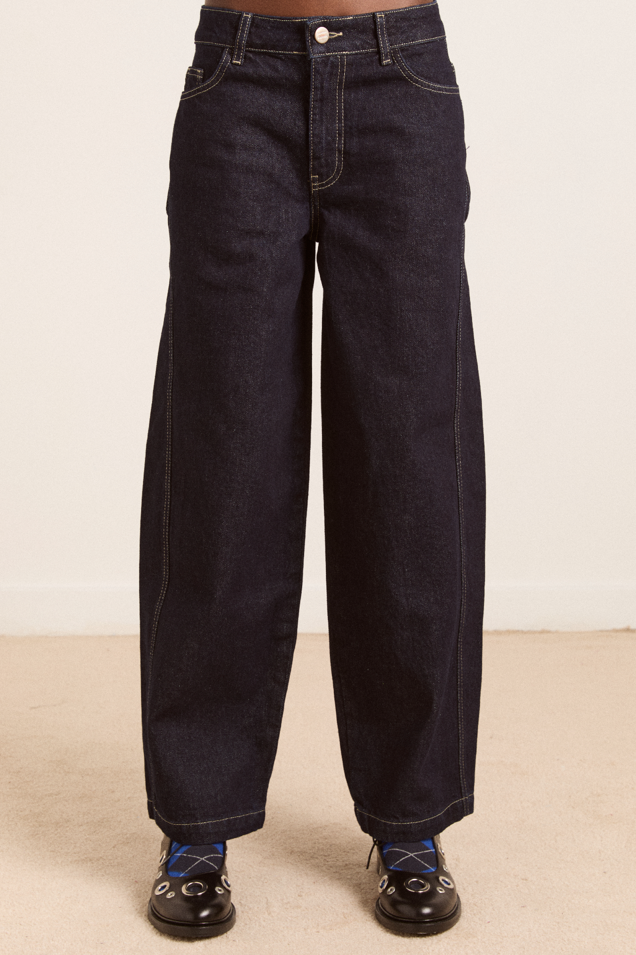 Made from a mixture of new and recycled cotton, our Dion jeans are fabricated in structured dark blue denim. Features include a wide leg, high rise and seam detailing.