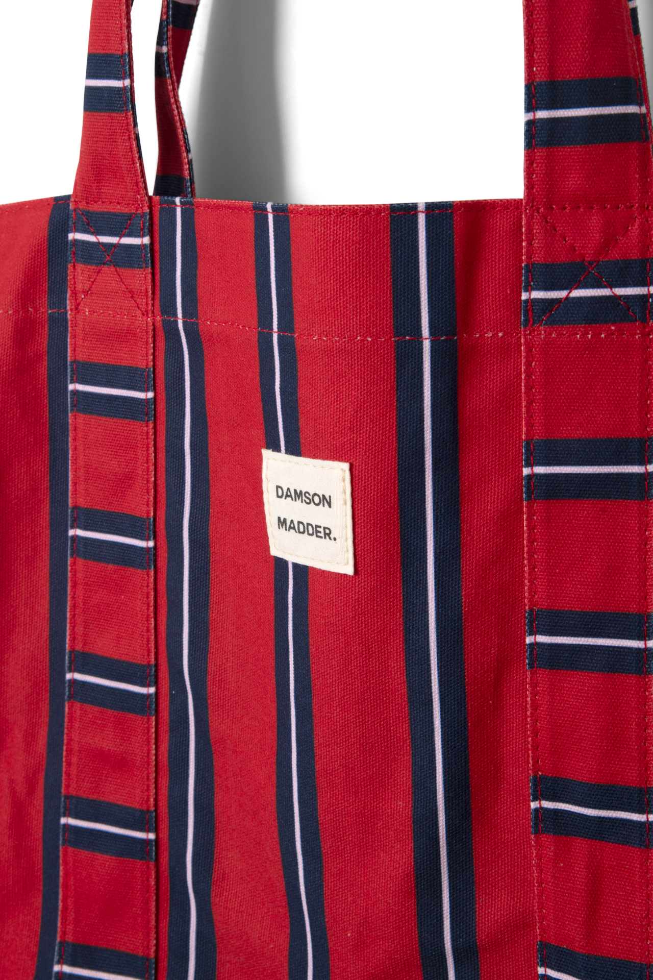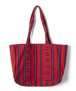 Our much loved canvas tote has had a summer update, in our custom red stripe print. Crafted from 65% recycled cotton and 35% conventional cotton, this tote features an internal slip pocket and our signature woven Damson Madder label.