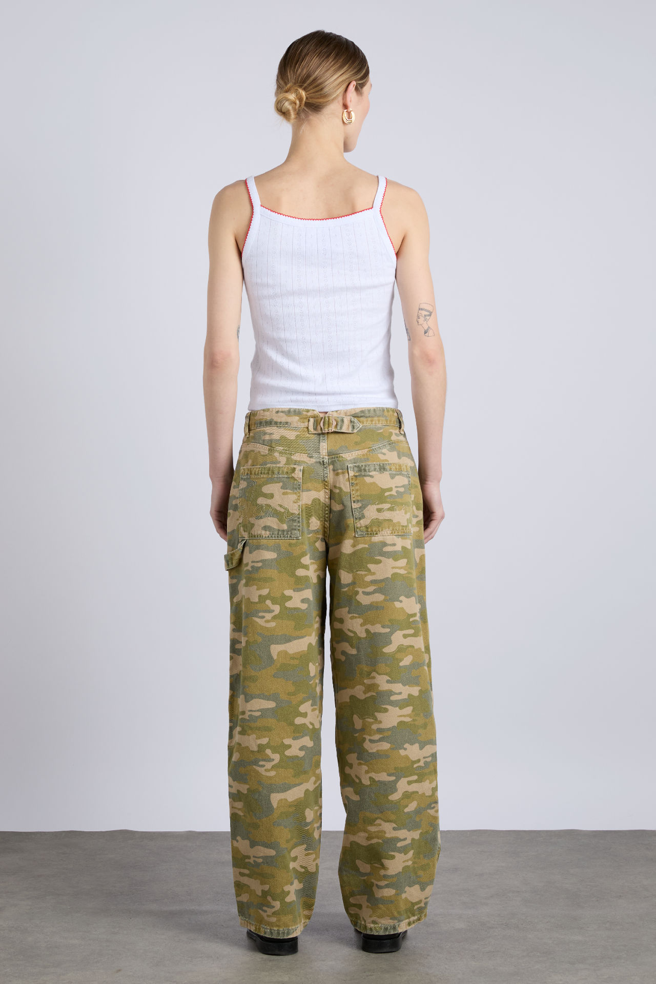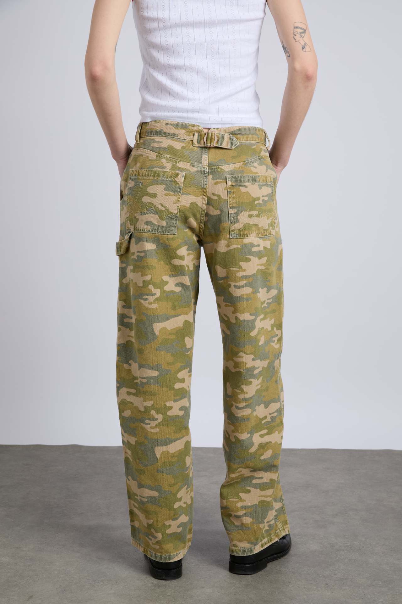 Our well-loved Drew Jeans are back in a custom green camo print, expertly crafted from 100% cotton. A mid rise, relaxed fit which can be adjusted to your preference with the back waist adjuster. Matching green camo Francis Jacket available.