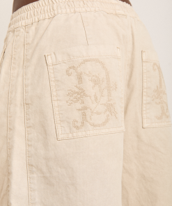 Our hero Felix Trousers have been reimagined in our new stone colourway. With our signature loose barrel fit, elasticated waist, side seaming details and custom DM embroidery on the back pockets, the Felix trousers will be on repeat season after season. Made from 100% cotton.
