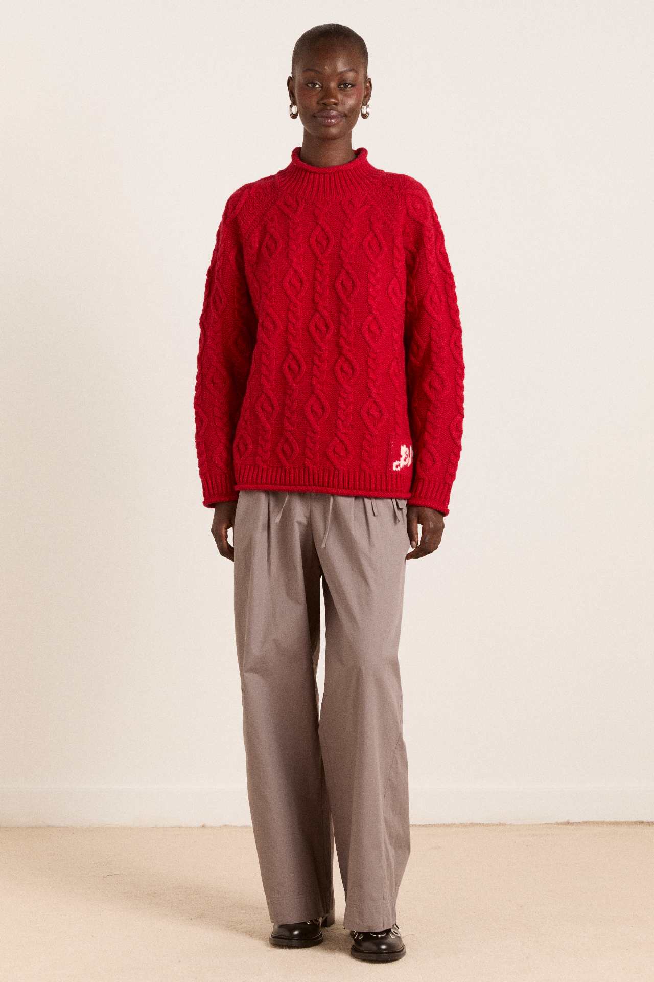 This chunky cable knit jumper brings effortless comfort with its oversized fit and cozy texture. Made from 100% certified responsible wool standard Wool, it’s finished with a subtle DM motif at the hem. A quiet nod to detail in a timeless winter staple.