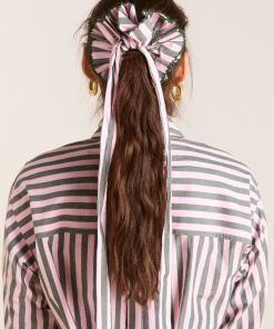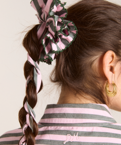 Versatile and stylish, the Garter Bun Wrap in garden tulle stripe can be worn two ways. Crafted from 100% organic cotton, it is designed to weave through your plait or tie into a bow. Finished with a contrast trim edge and our signature embroidered DM logo.
