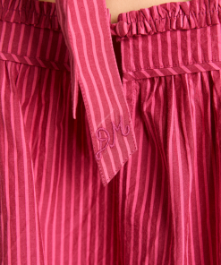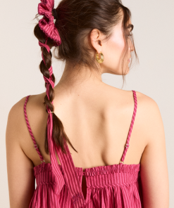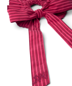 Featuring our signature embroidered DM logo detail and crafted from 100% organic cotton, the Garter Bun Wrap is now available in our berry business stripe print. Designed to be tied in a bow or woven through your plait, this scrunchie will elevate any hairstyle.