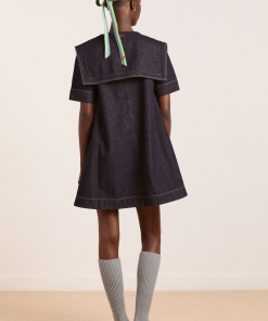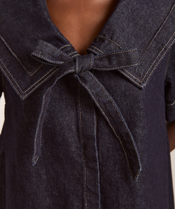 Boxy and structured, our Goldie dress has been reimagined in our signature indigo denim. Crafted from 100% organic cotton, the Goldie features an oversized collar with a functional bow and a flattering A-line silhouette. Layer over a matching jean or wear on its own as the days warm up.