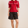 Our Hazel Shirt in blue choc stripe is the perfect mix of tailored and feminine. With shirred detailing, button down placket and a peplum hem, this 100% organic cotton top is a stand out piece. Pair with our matching accessories.