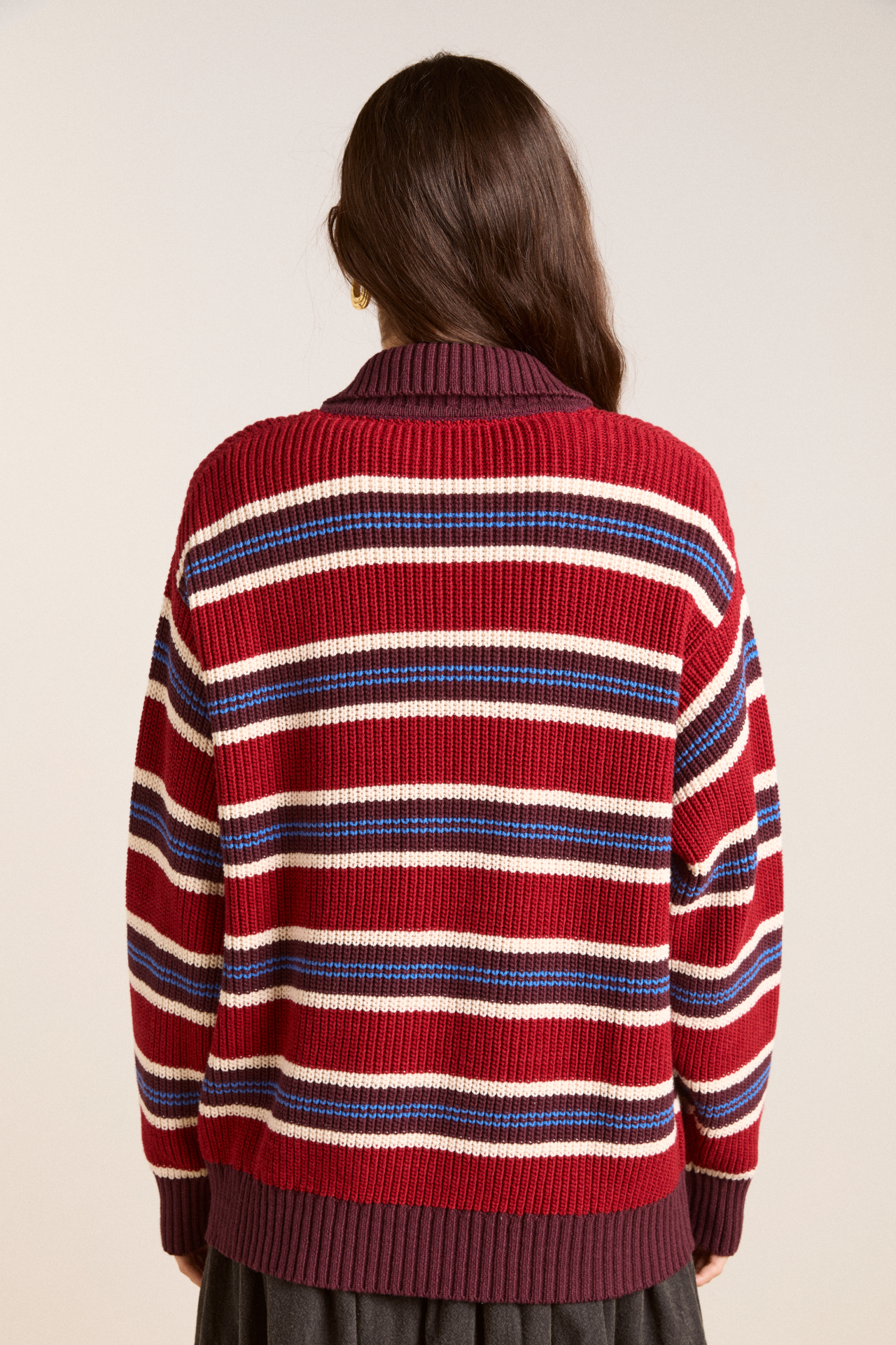 The Ilona Striped Rugby Jumper reimagines the classic rugby in a 100% cotton knit. Featuring a button down placket with branded buttons and our signature DM embroidered logo, the Ilona effortlessly combines comfort with style.