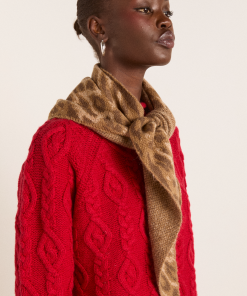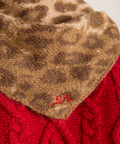 A statement accessory with versatile styling options. This knit headscarf features the signature DM leopard design, finished with contrast red DM embroidery for a bold touch. Pair with the matching mittens for a coordinated look.