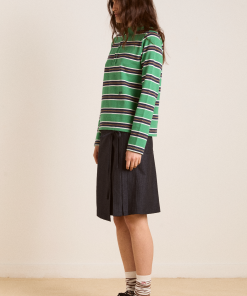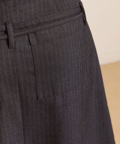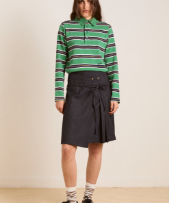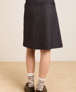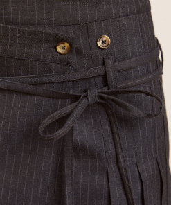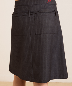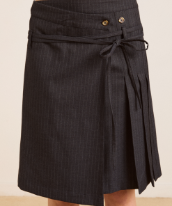 Give a stylish nod to formality with our new kilt shape, the Libby in pinstripe. Featuring removable tie detailing and pleating, finished with our signature DM embroidery on the back in red, it’s a staple that will be in your wardrobe for seasons to come. Wear on its own or layer over our matching Tatianna Trouser in pinstripe.