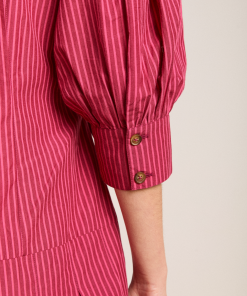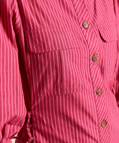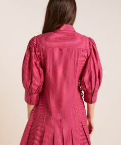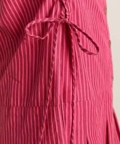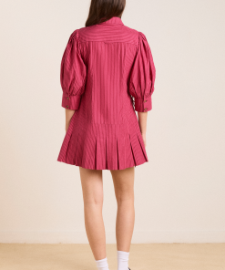Fusing masculine tailoring with a feminine details, meet the Maisie Mini Shirt Dress in berry business. Crafted from 100% organic cotton, the Maisie features a drop waist and pleated skirt with functional ties at the waist. Matching accessories available.