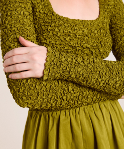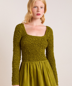 Crafted from 100% organic cotton, the Malinda Super Smocked Mini Dress in olive is the perfect transeasonal dress. Designed with a square neck and hand smocked bodice and sleeves for a flattering fit. The Malinda will effortlessly carry you from day to night.