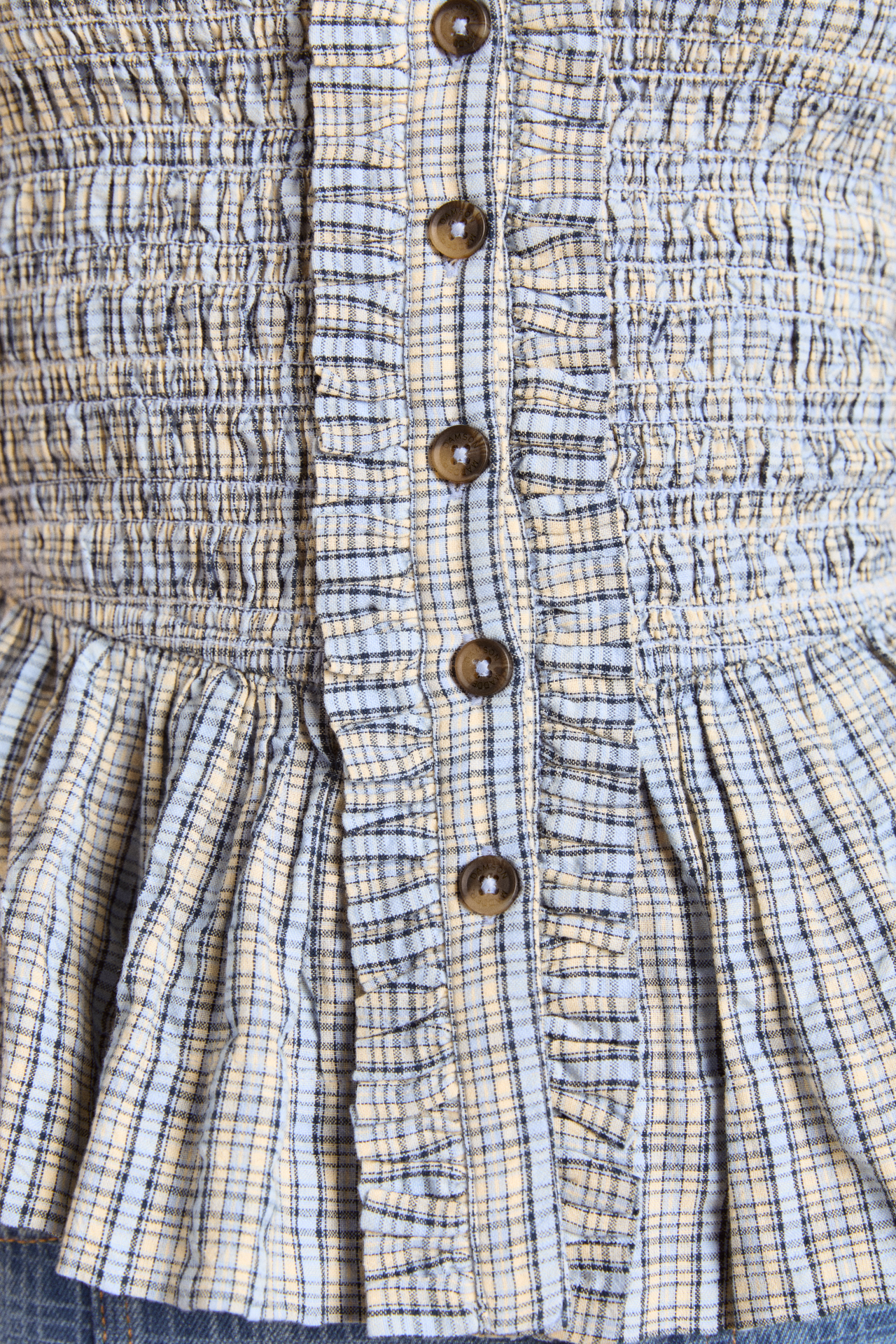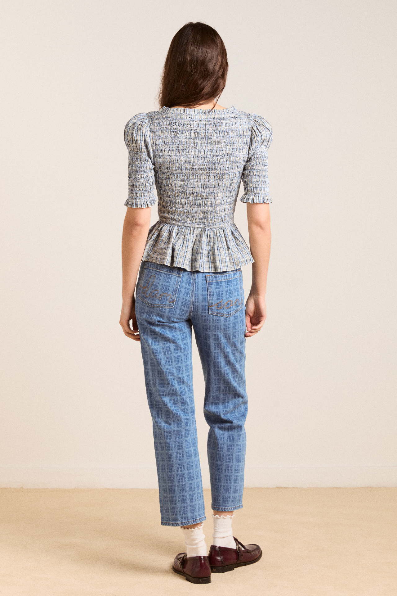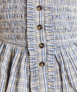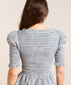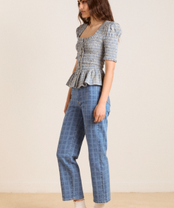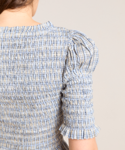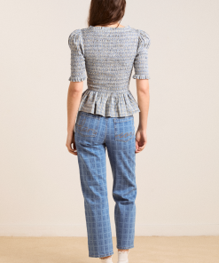 The Mansi shirred Blouse will see you through every season. Crafted from 100% organic cotton in our cloudy check print, she’s designed with puff shoulders and a shirred bodice for a silhouette that gives structure without compromising on comfort. The peplum hem is the perfect finishing touch on this fun and feminine blouse. Matching accessories available.