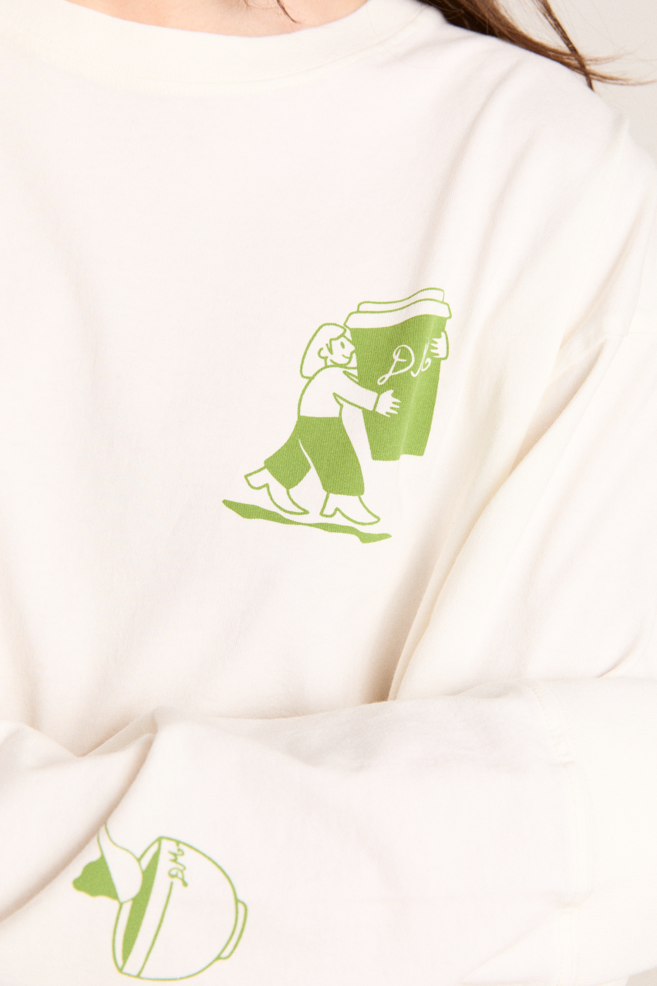 Crafted from 100% organic cotton, our Matcha Moments long sleeve Tee is the go-to piece you’ll reach for every day. Designed with a relaxed, oversized fit, this top features thoughtfully placed graphic prints on the front and back for a playful touch.
