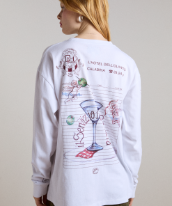 Crafted from 100% organic cotton, our Olive Hotel Long Sleeve Tee is the go-to piece you’ll reach for every day. Designed with a relaxed, oversized fit, this top features thoughtfully placed graphic prints on the front and back for a playful touch.