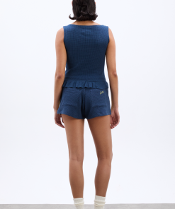 Designed for easy wear, the Pippa Waffle Shorts feature a mid-rise elasticated waist with an adjustable tie, contrast side stripe detailing, and a mini-length fit. Crafted from a soft organic cotton blend, these shorts are finished with functional back pockets and pair effortlessly with the matching Hattie Waffle Ruffle Tank.