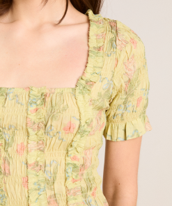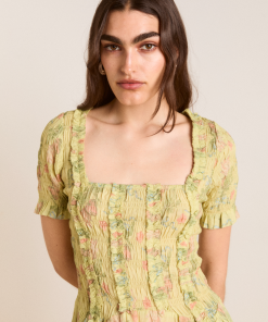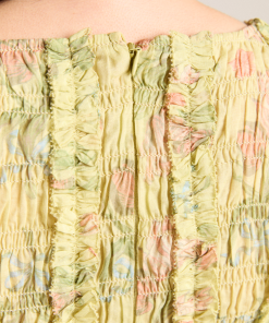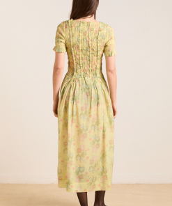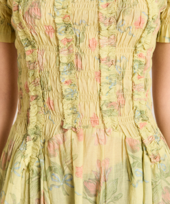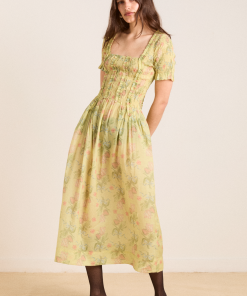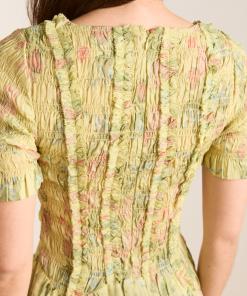 Vintage-inspired and effortlessly feminine, the Raphaela Ruffle Midi Dress in sheer tulip olive is adorned with an all over floral print and ruffle detailing. Designed with a square neck and shirred bodice for a flattering fit, with a flowy skirt delivering a timeless elegance.