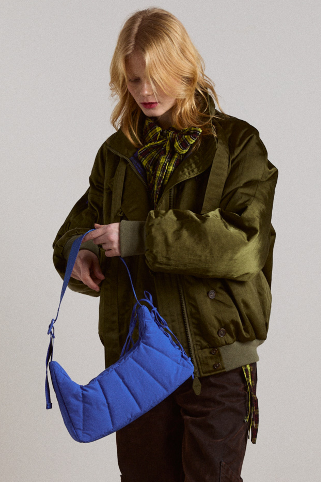 Crafted from durable 100% recycled polyester, and featuring an adjustable strap, the Saz Bag in cobalt can be worn cross body or as a shoulder bag. Finished with lace up tie detailing, it will effortlessly take you from day to night.