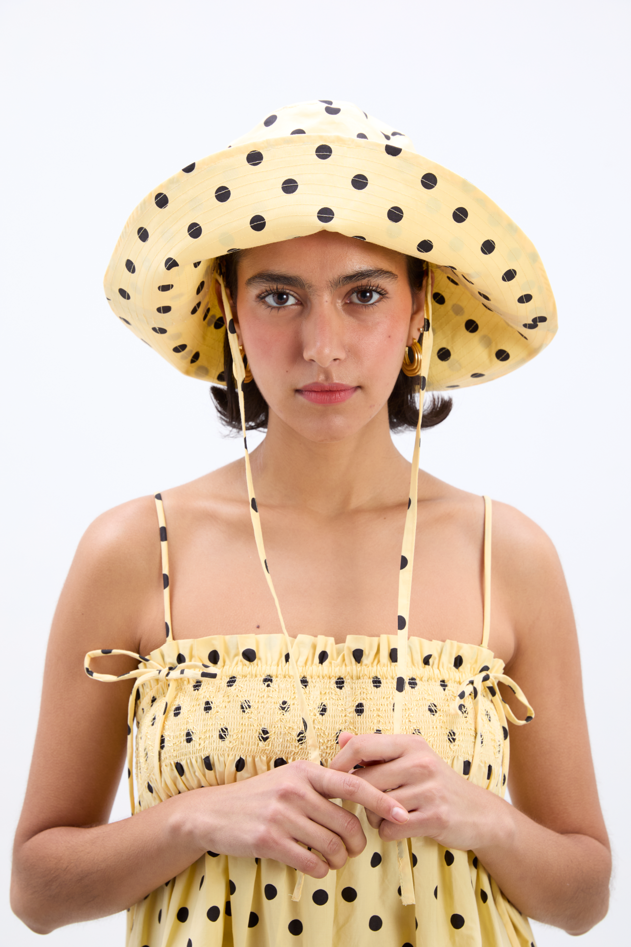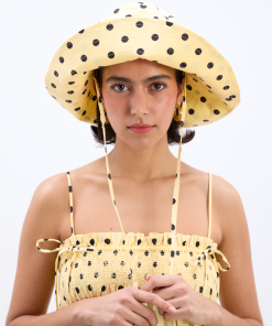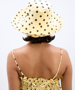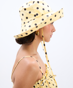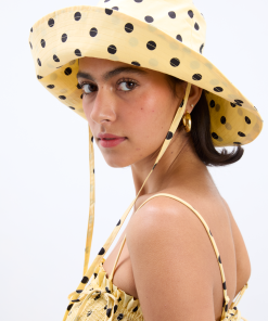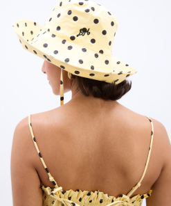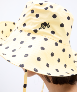 Our bestselling sun hat is back in our butter yellow and black polka dot print. Made from 100% organic cotton featuring tie detailing and our signature DM embroidered logo, it’s a summer staple.