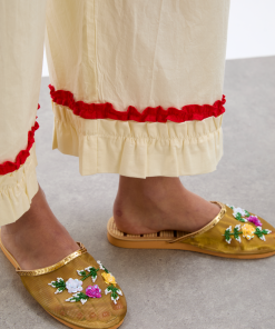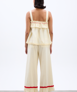 A relaxed staple with playful detailing, the Tula Frilly Hem Trousers are crafted from lightweight 100% organic cotton. Designed with an elasticated waist, functional front and back pockets, and a contrast ruffle hem, these trousers are perfect for pairing with the matching Tula Smock Cami.