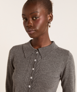 Meet the Voula Wool and Cashmere Blend Cardigan in charcoal. Expertly crafted with 88% certified responsible wool standard wool and 12% from the Good Cashmere Standard®, the Voula is a fine knit featuring a button down placket. Finished with cable detailing down the placket, the Voula is the perfect layer to see you through every season. Select your regular size for a relaxed fit.