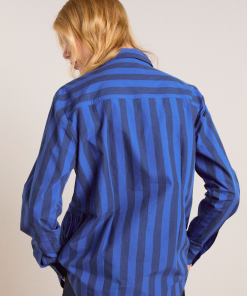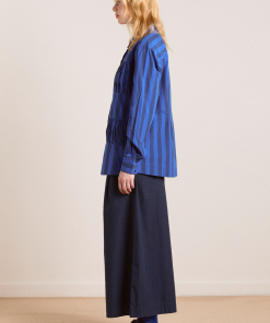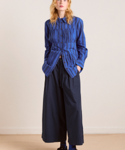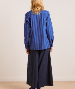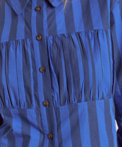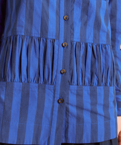 Fusing form and function, the Xenia Shirt in cobalt stripe is a standout piece. Crafted from 100% organic cotton, the Xenia features gathered panel detailing, with a button down front and all over cobalt stripe print.